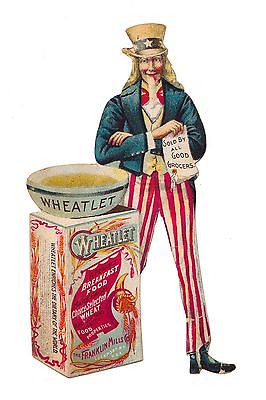 c1890 WHEATLET Victorian Advertising Die Cut Trade Card - Uncle Sam Patriotic