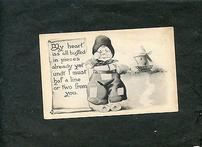 Child Crying, 1912 postcard, "My Heart is busted & I must have a line from you"