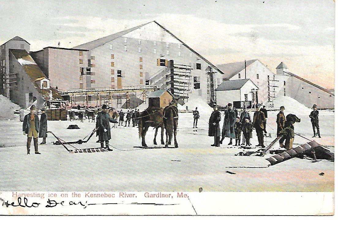 Title (ebay affiliate link): GARDINER MAINE CUTTING ICE on KENNEBEC RIVER 1908 mailed