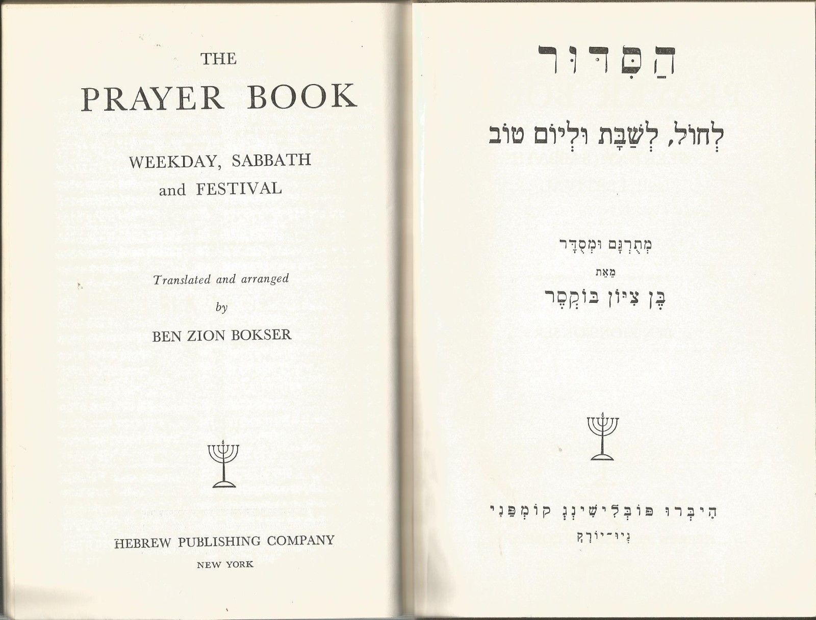 Title (ebay affiliate link): 1961 The Prayer Book Weekday. Sabbath & Festival - Hebrew/English - Bokser