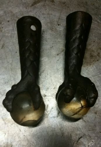 Title (ebay affiliate link): 2 Antique Vintage Cast Iron Glass Marble Ball Claw Feet, Salvaged Piano Stool