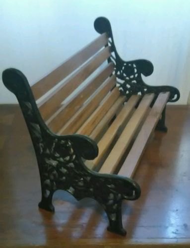 Title (ebay affiliate link): Antique Miniature Ornate Cast Iron & Wood Doll/Garden Bench Salesman Sample
