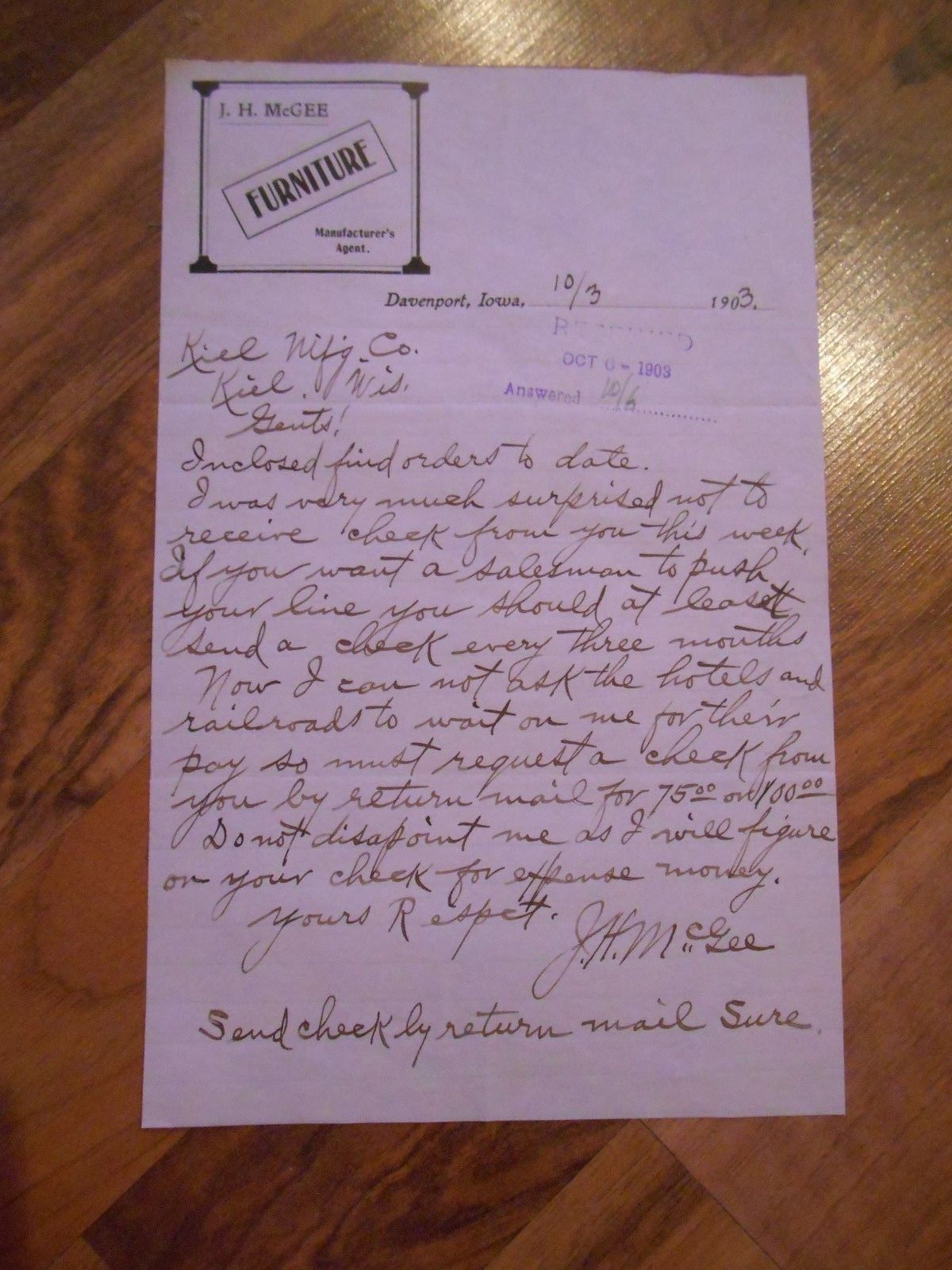 Title (ebay affiliate link): Antique 1903 JH McGee Furniture Davenport Iowa Adveristing Souvenir Letter Paper