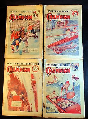 4 "THE CHAMPION" BOYS MAGAZINE'S WEEKLY PAPER 1954-55 SOCCER CRICKET UFO'S CROCS