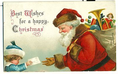 vintage christmas postcard 1907 santa w/toys letter from child ellen clapsaddle