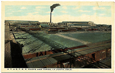 CO Colorado AT&SF RR Shops, La Junta Fred Harvey White Border Unused