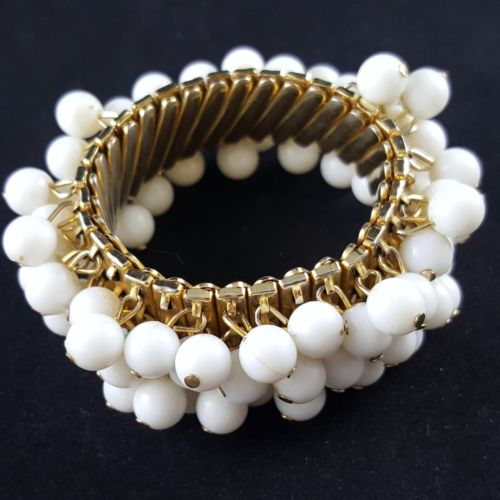 Title (ebay affiliate link): Vintage Expansion Bracelet White Milk Glass Bead Cluster Gold Tone H143