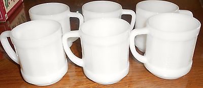 Title (ebay affiliate link): Fire-King Anchor Hocking White Milk Glass Barrel Mugs Set of 6 D Handle