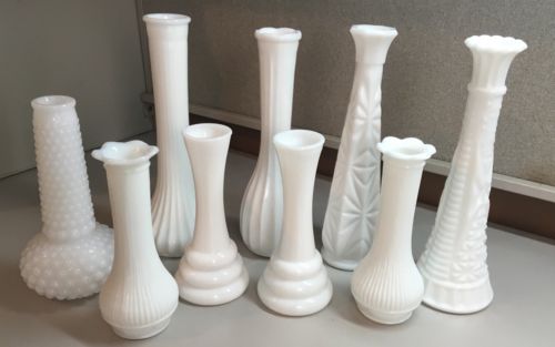 WHITE MILK GLASS BUD VASES LOT OF 9. 1 Hoosier