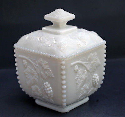 Westmoreland Milk Glass Beaded Grape Square Candy Box