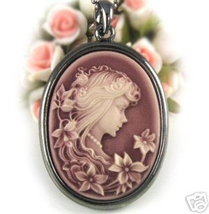 Title (ebay affiliate link): Antique Design Oval Pink Cameo Charm Pendant Necklace