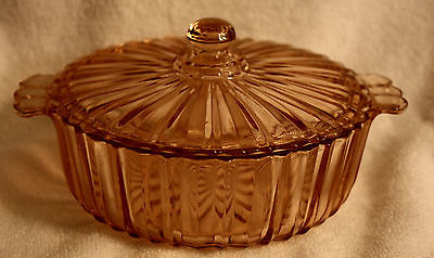 Vintage Pink Depression Glass Lidded Bowl with Handles