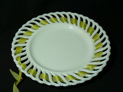 Vintage White Milk Glass Plate Swirled Reticulated Edge