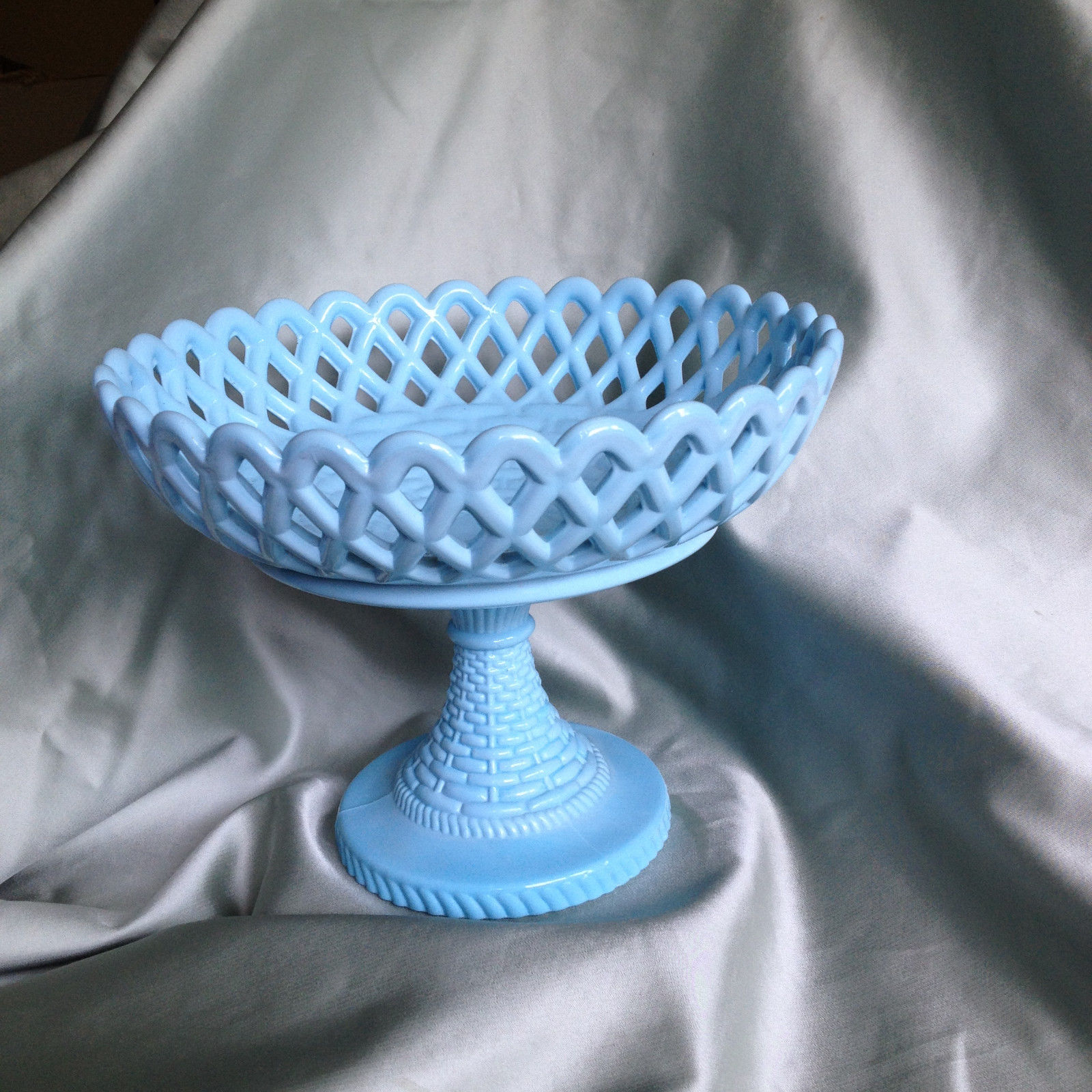 Title (ebay affiliate link): Antique EAPG Challinor Taylor blue milk glass pedestal fruit compote wedding