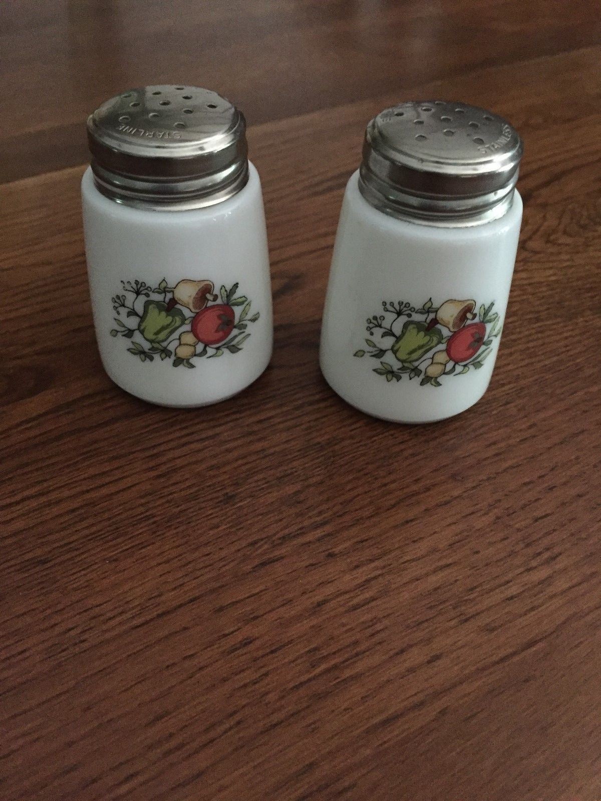 Title (ebay affiliate link): STARLINE Salt & Pepper Shakers White Milk Glass Garden Vegestables VTG