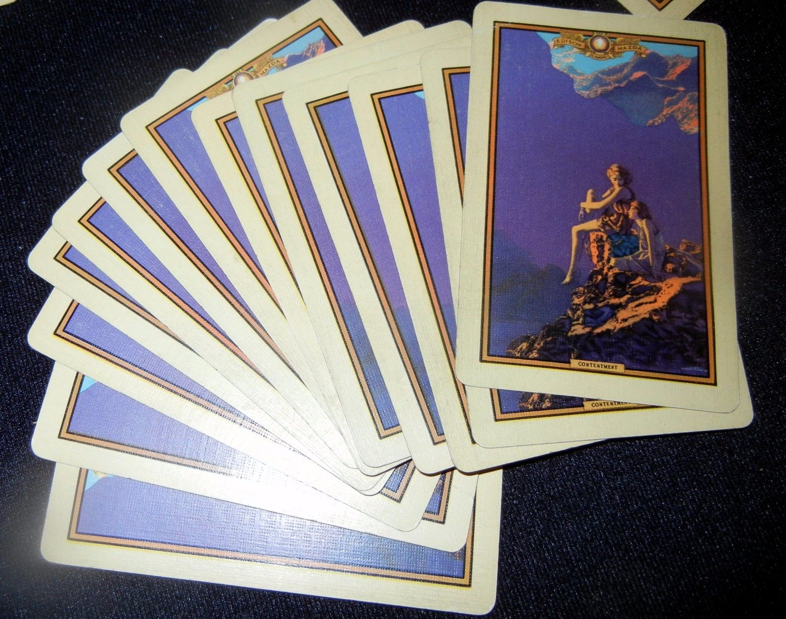 Title (ebay affiliate link): Beautiful Maxfield Parrish Contentment FULL DECK playing cards No Box NO RESERVE