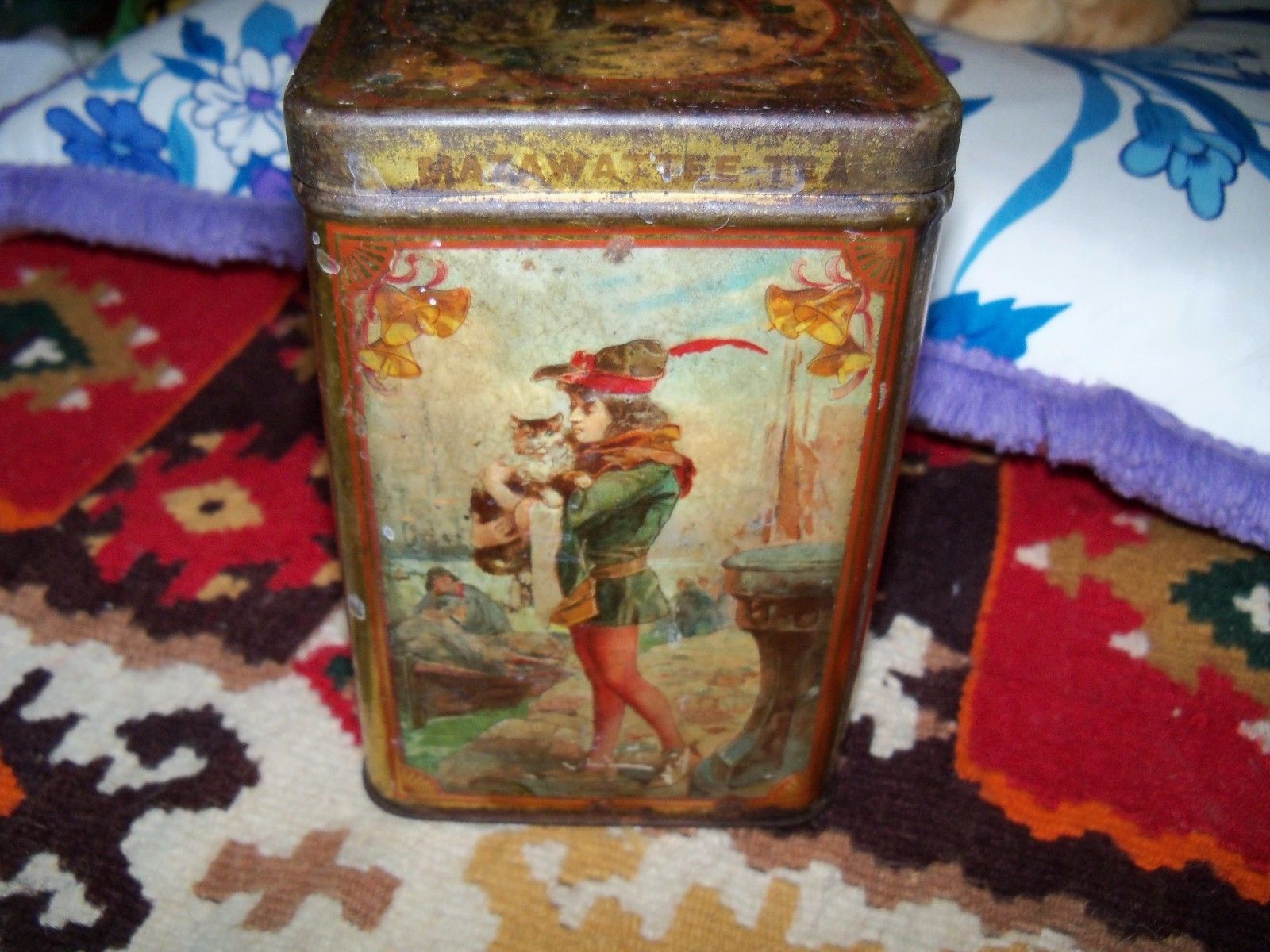 MAZAWATTEE TEA RARE EARLY TIN Cats Vintage Antique