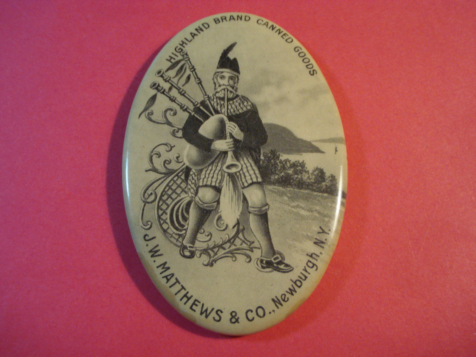 Title (ebay affiliate link): CELLULOID ADVERTISING POCKET MIRROR HIGHLAND BRAND CANNED GOODS NEWBURGH, N. Y.