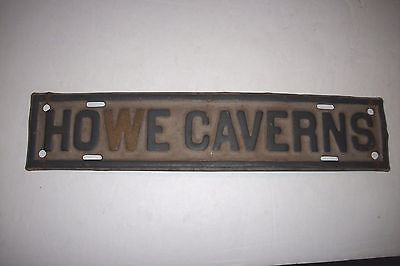Circa 1920's HOWE CAVERNS NY Tin Metal Sign or Car Topper License Plate Runner