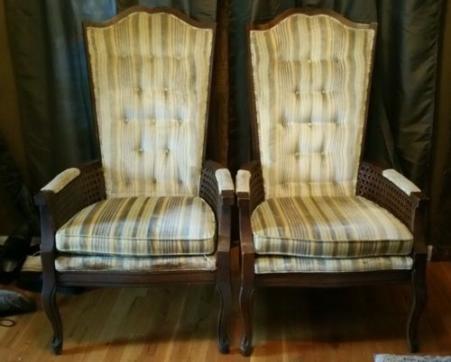 Title (ebay affiliate link): Pair Vintage Rare Antique high back upholstered chairs winged