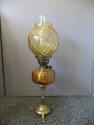 Edwardian Brass & Amber Glass 64 cm Oil Lamp