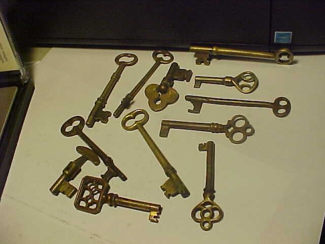 Title (ebay affiliate link): 12 Antique Vintage BRASS Skeleton Keys For Furniture Cabinet Doors 2 Folding !