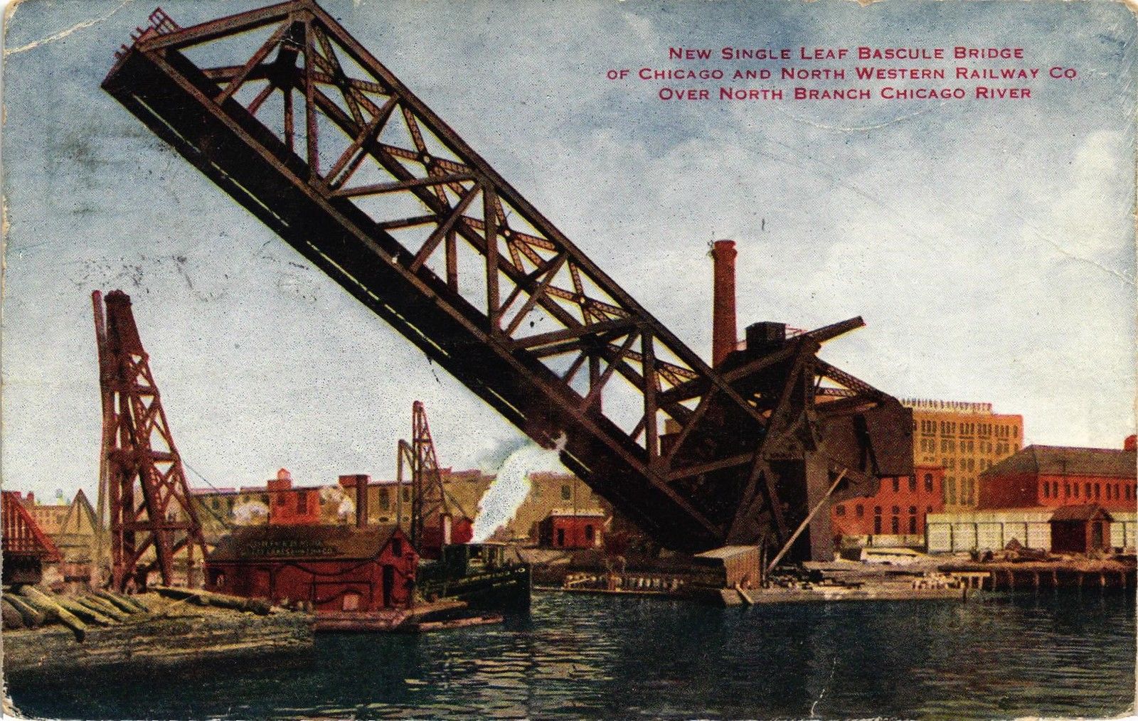Title (ebay affiliate link): DR JIM STAMPS US SINGLE LEAF BASCULE BRIDGE ON CHICAGO RIVER POSTCARD 1915