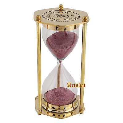 Artshai vintage design 5 minute brass sand timer hourglass. Handmade, 6 inch siz