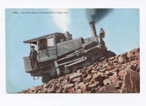 Title (ebay affiliate link): (#589) Climbing Pikes Peak Cog Road Railroad Train Colorado 1910s Postcard