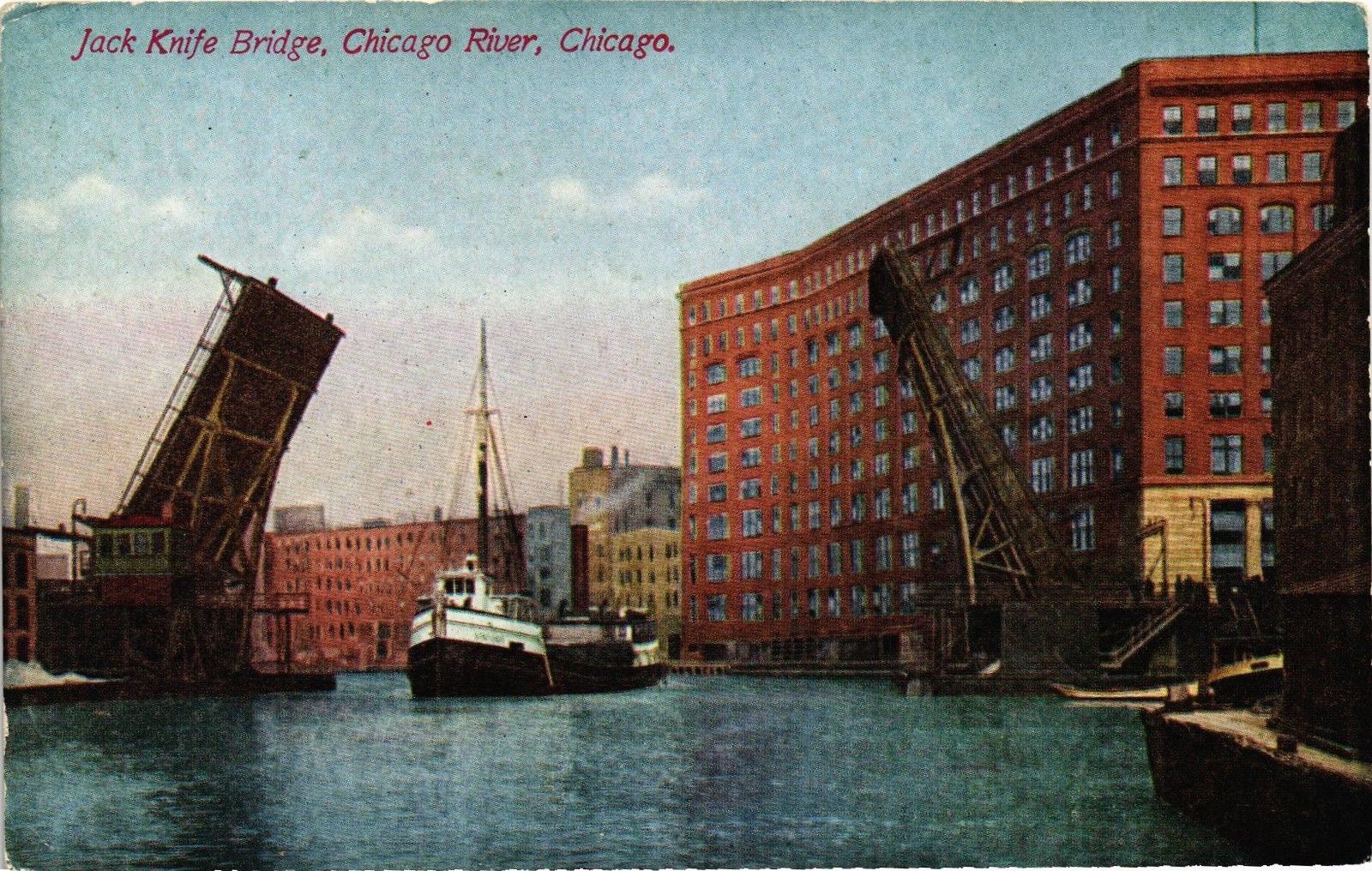 Title (ebay affiliate link): DR JIM STAMPS US SHIP UNDER JACK KNIFE BRIDGE POSTCARD CHICAGO RIVER