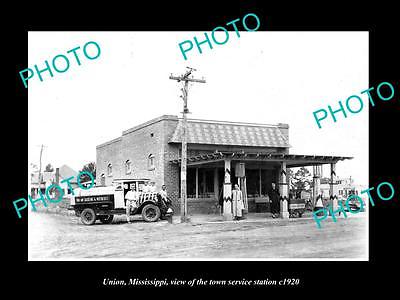OLD LARGE HISTORIC PHOTO OF UNION MISSISSIPPI, VIEW OF THE SERVICE STATION c1920