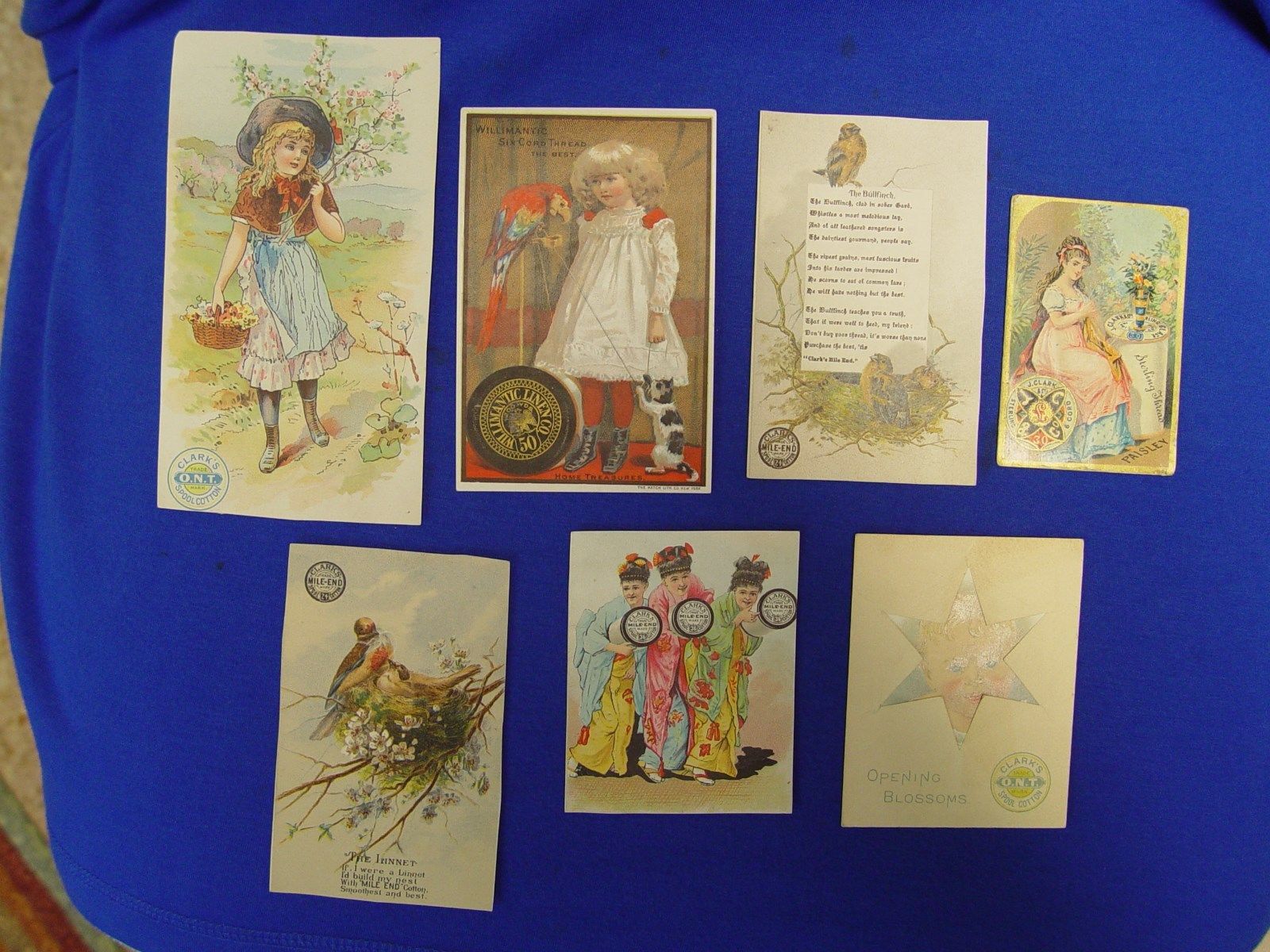 ANTIQUE SEWING ADVERTISING TRADE CARD LOT CLARKS & WILLIMANTIC SPOOL COTTON