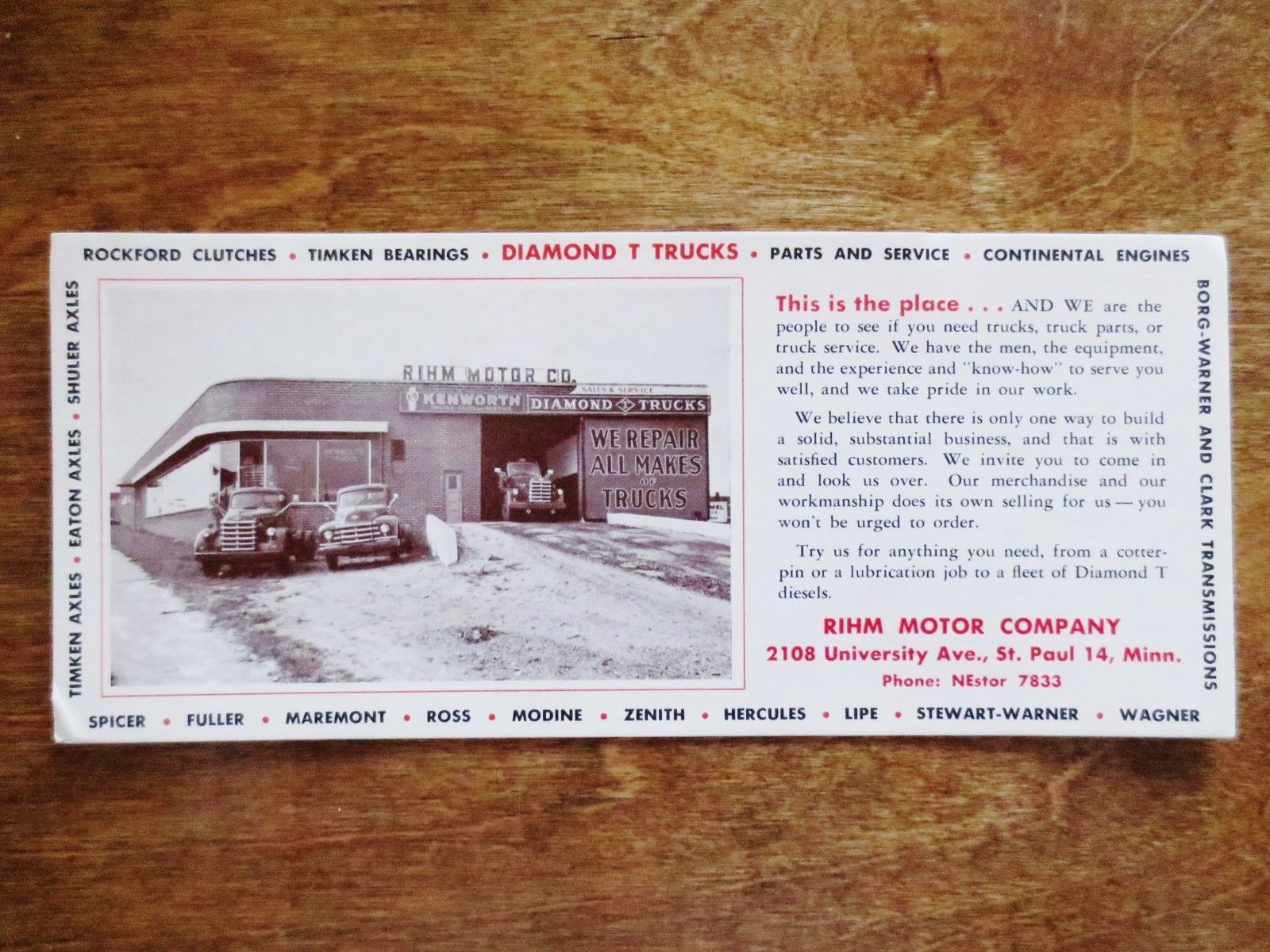 1950s Diamond T Trucks RIHM Motor Dealer Sales Advertising Blotter St. Paul MN