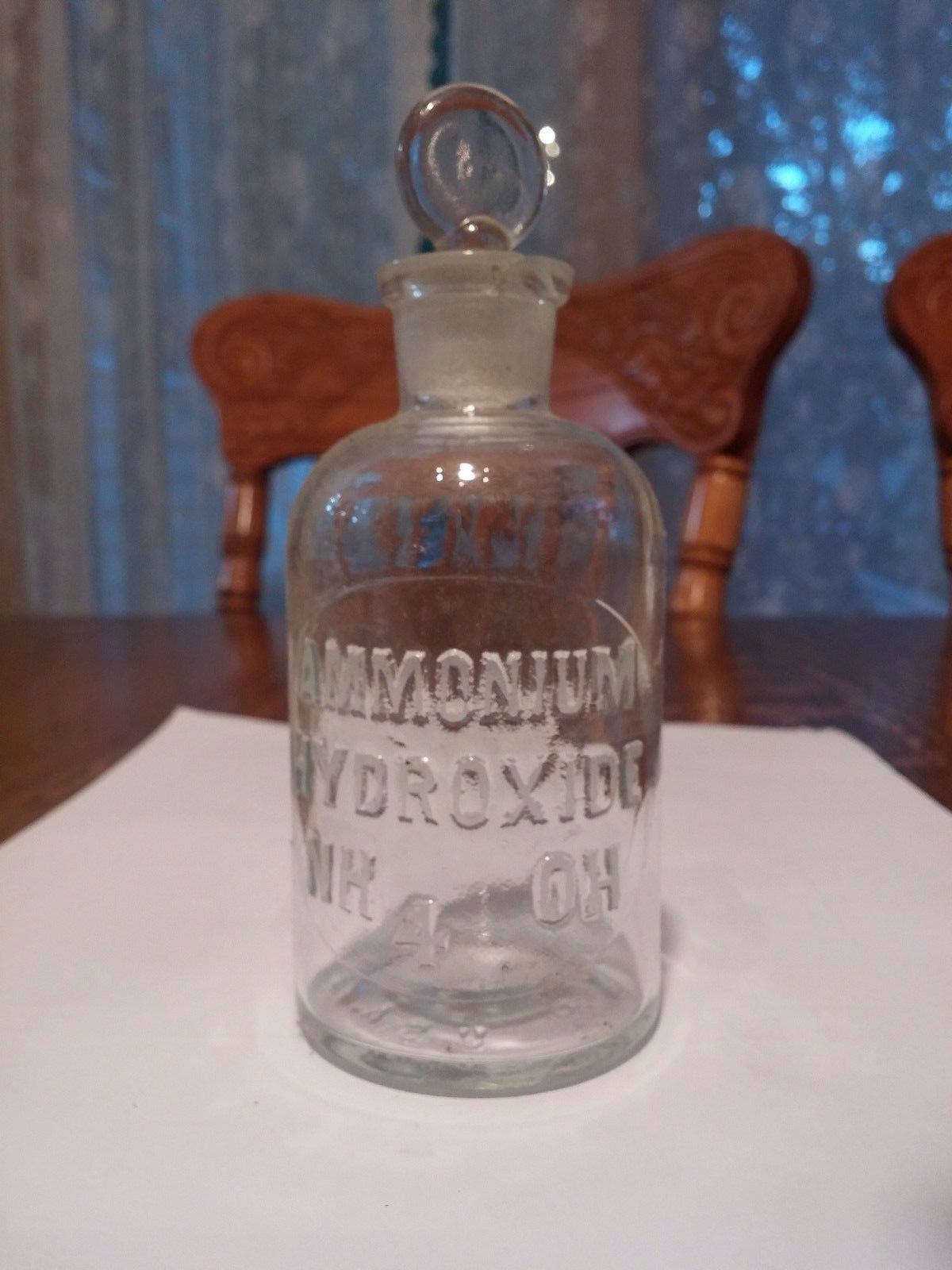 Title (ebay affiliate link): AMMONIUM HYDROXIDE 125 ml 4 oz Antique APOTHECARY CHEM EMBOSSED GLASS BOTTLE