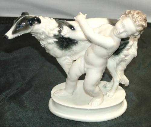 Title (ebay affiliate link): ROSENTHAL PORCELAIN PUTTI CHERUB CHILD & BORZOI DOG FIGURINE 1282 MAX FRITZ