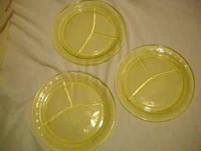 Title (ebay affiliate link): (3) YELLOW DEPRESSION GLASS DIVIDED DINNER PLATES GRILL