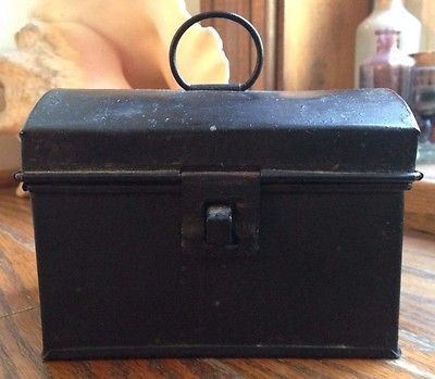 Title (ebay affiliate link): ANTIQUE COIN TIN BOX PRIMITIVE RUSTIC BLACK SMALL HINGED METAL