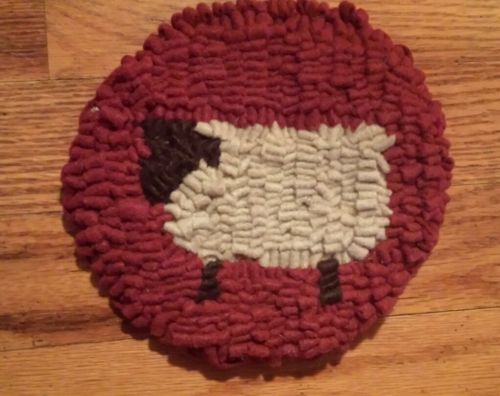 Handmade Primitive Sheep Hooked Rug ***Prim