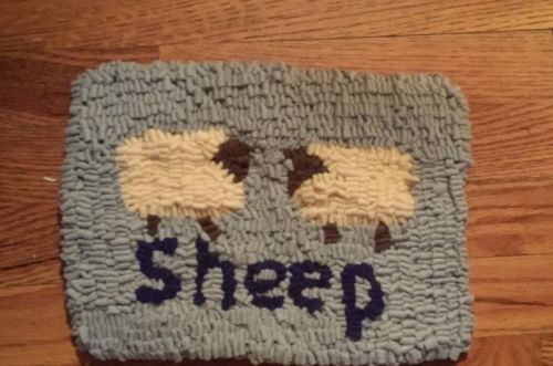Handmade Primitive Sheep Hooked Rug ***Prim
