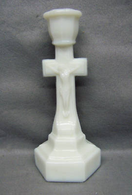 Vintage Milk Glass Religious Crucifix Candle Holder