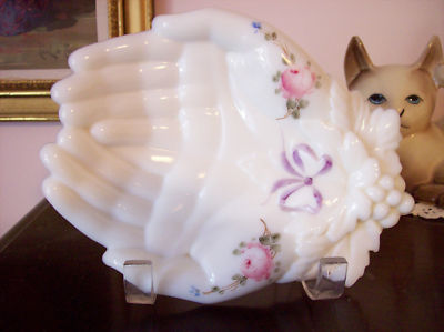 WESTMORELAND MILK GLASS VANITY HANDS CHARLETON ROSES