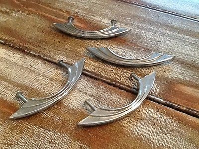 4 VINTAGE CHROME METAL ART DECO HOOSIER CABINET DRAWER Pulls Handles Hardware