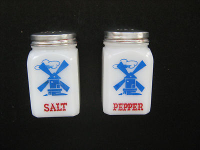 VINTAGE Milk Glass WINDMILL Salt & Pepper Shakers EXLNT