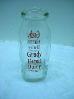 milk bottle grady farms dairy waterloo iowa glass pint