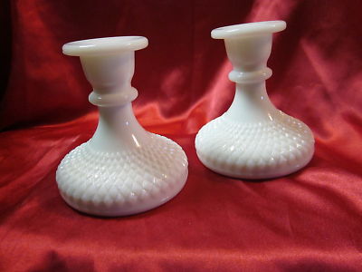 2 WESTMORELAND MILK GLASS SAWTOOTH CANDLESTICK HOLDERS
