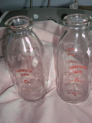 2 VINTAGE MILK BOTTLES TAMWORTH FARM NO. BLUE HILL ME