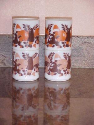 4 Vintage Mushroom Mugs Milk Glass Stacking Set