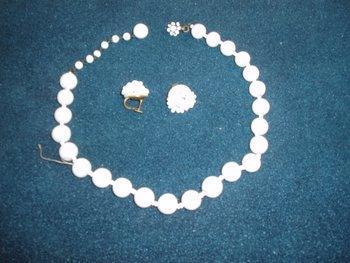Vintage Miriam Haskell Milk Glass Necklace & Ear rings