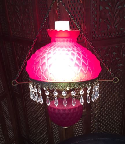 Vintage Fenton Ruby Red Satin Hanging Lamp