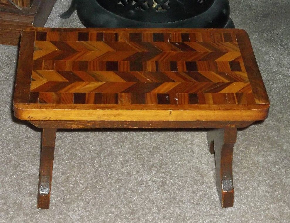 Vintage Marquetry Inlaid Wood Stool Wooden Footstool